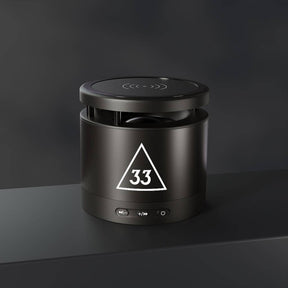 Equipped with Bluetooth version 4.2, a 33ft connection range, and a 3W output, this Aluminum-bodied, Masonic Bluetooth speaker delivers crystal clear sound anywhere you go. Connect any Android/ iOS phone (including iPhone X) and listen at max volumes for over 2 hours. The top part of the speaker is a smart wireless charging pad. Package includes: 2 in 1 USB charging cable & 3.5mm Aux cable.