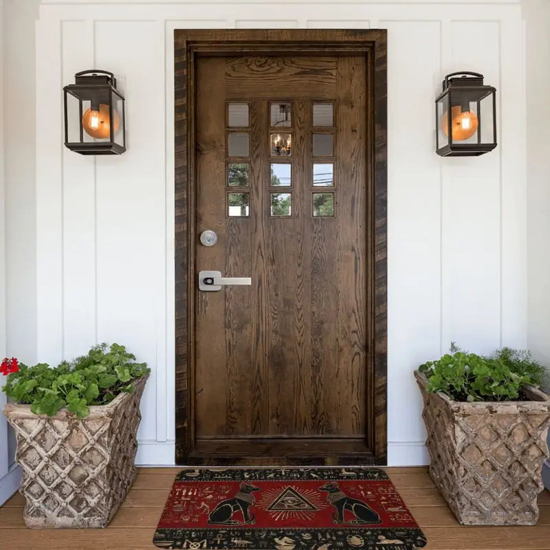 Welcome guests into your home with the protective charm of ancient Egypt using our Eye of Horus Waterproof Polyester Doormat. Crafted with high-quality materials, this doormat showcases the Eye of Horus, a symbol of health and safety in Egyptian culture. Its waterproof polyester construction ensures durability and easy maintenance, while the iconic design adds a touch of mystique to your doorstep.