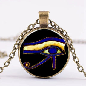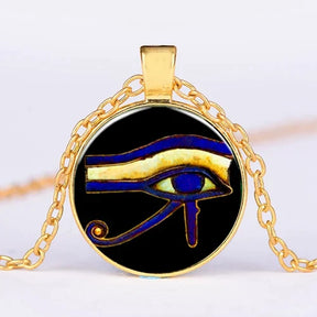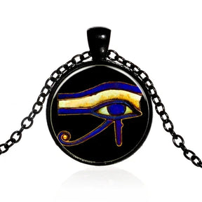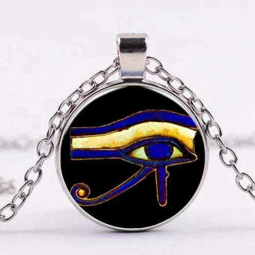 Introducing this Ancient Egypt Necklace, with a round pendant showcasing the Eye of Horus with a vibrant, colorful design. This symbolizes protection and strength from ancient Egyptian traditions, offering a unique and eye-catching tribute to Egypt's rich heritage.