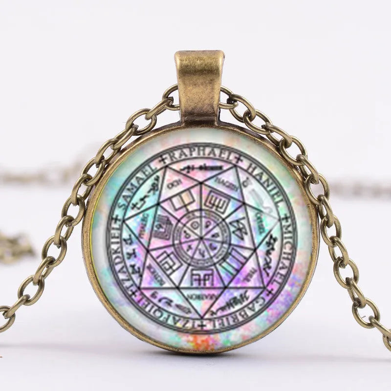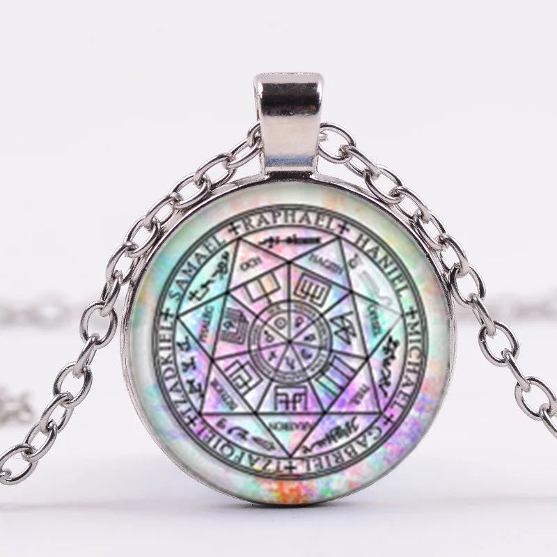 Ancient Israel Necklace - Seven Arch Angels Glass Pendant