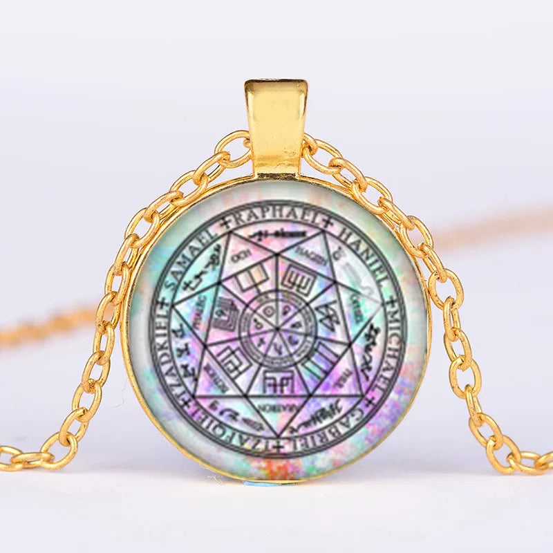 Embrace celestial guidance with the Seven Arch Angels Glass Pendant. Featuring exquisite glass pendant adorned with the symbols of the seven archangels, this necklace serves as a conduit for divine protection and spiritual enlightenment. Wear it close to your heart and invoke the blessings of the archangels as you navigate life's journey.