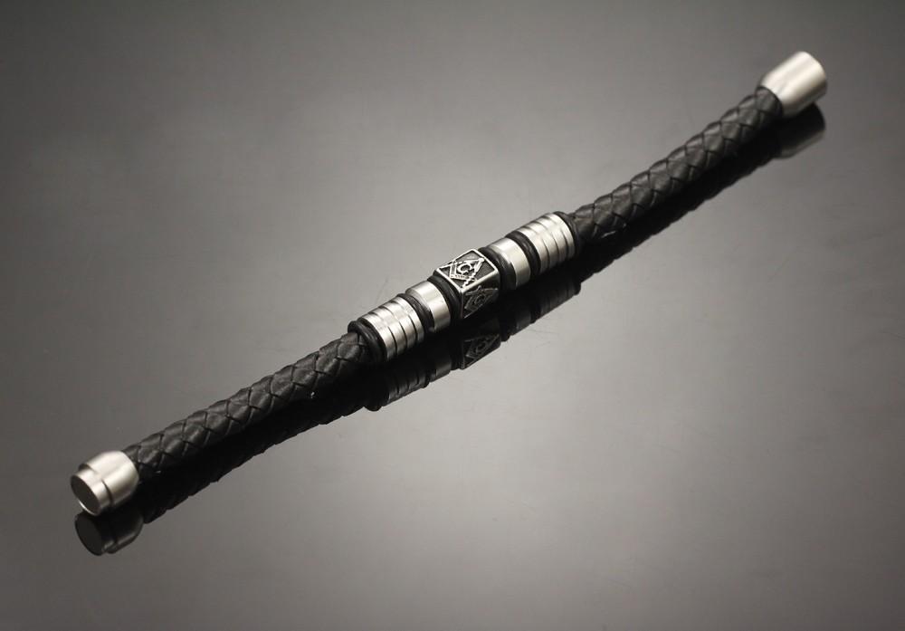 - FASHION DESIGN- Woven black leather strand featuring with stainless steel beads charms with Masonic Freemason symbol, stylish yet unique, never goes out of fashion.