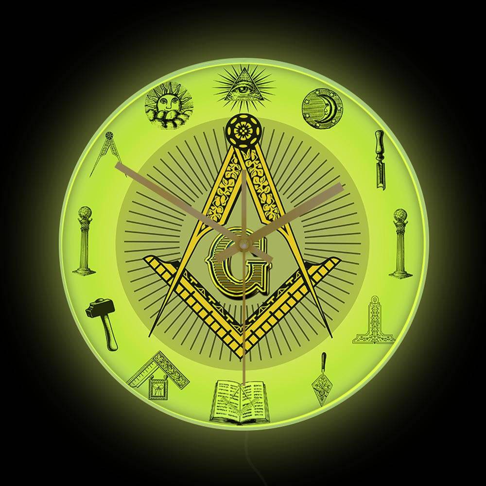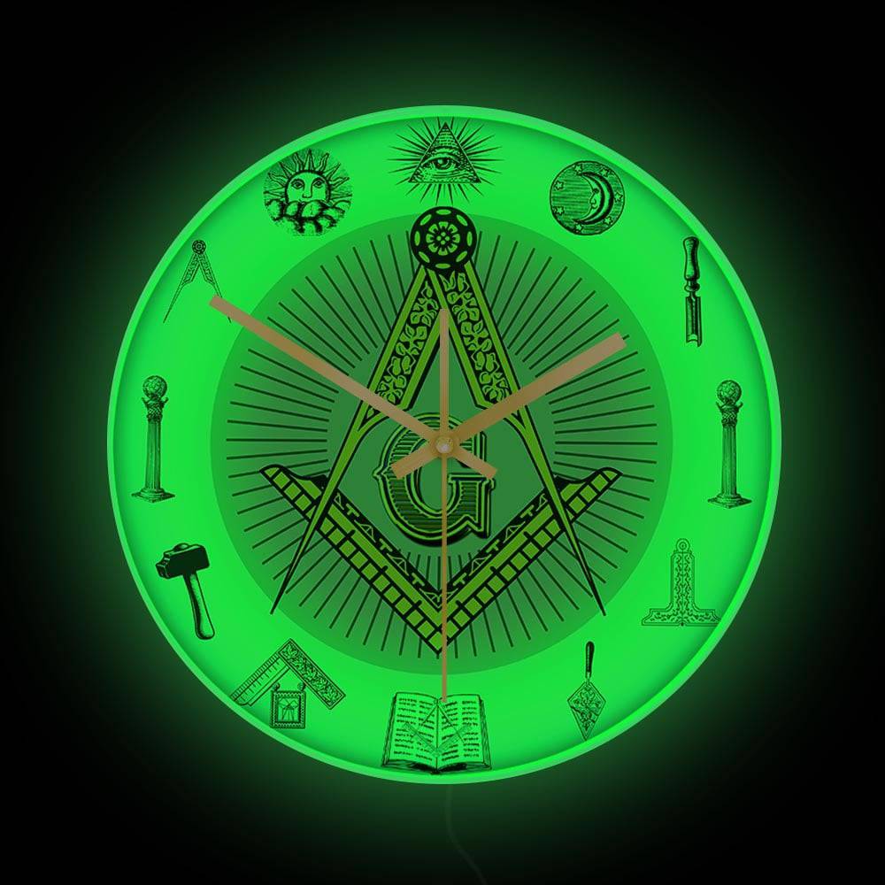 Golden Square and Compass G Mute Digital LED Masonic Wall Clock