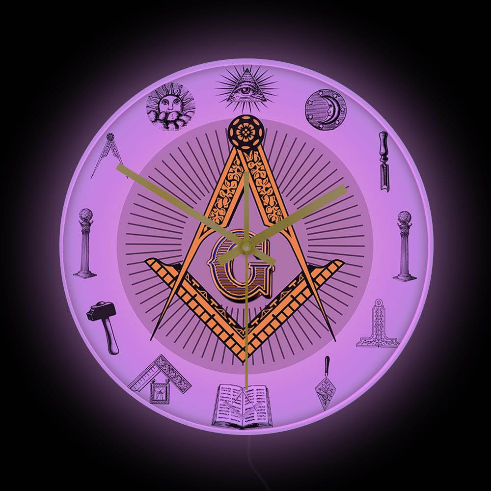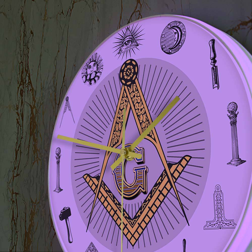 Master Mason Blue Lodge Clock - Golden Square and Compass G Digital LED