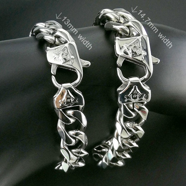 Square and Compass G Silver 316L Stainless Steel Masonic Necklace and Bracelet