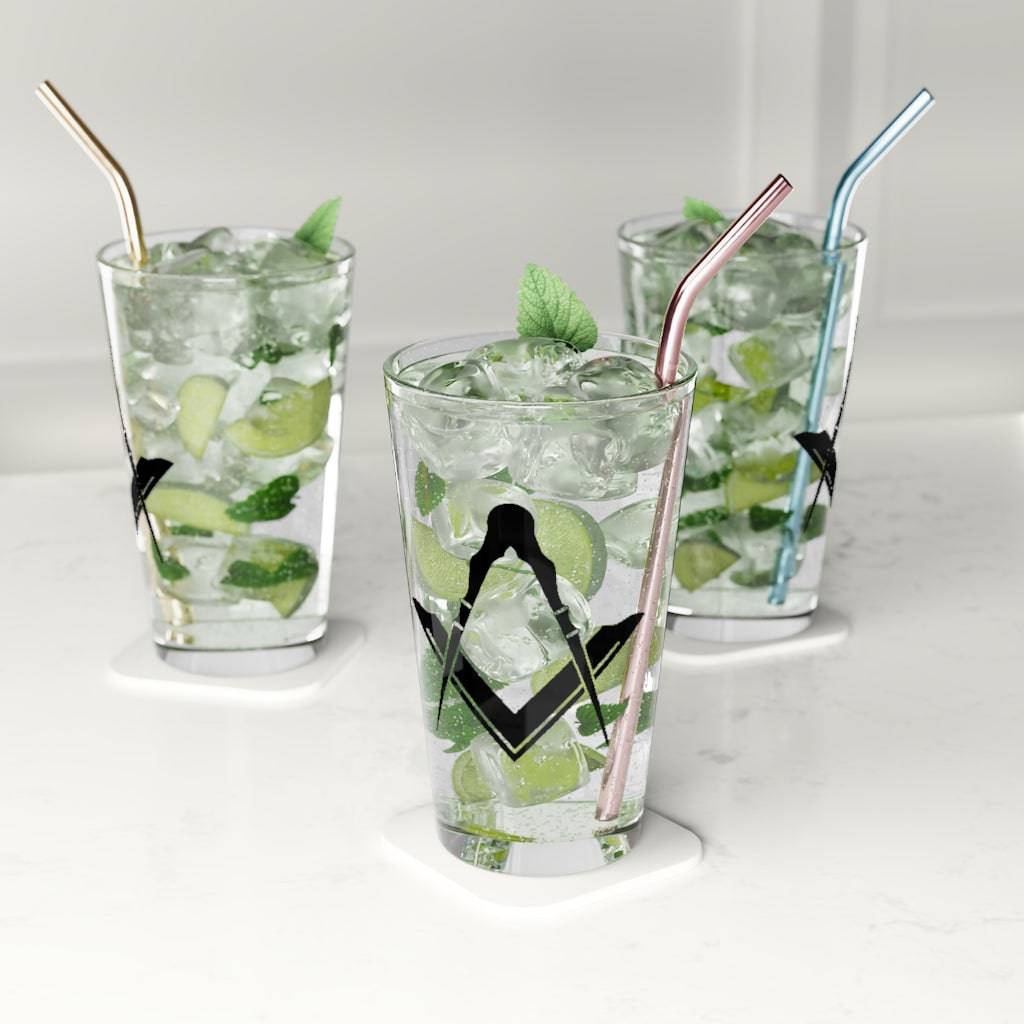 Master Mason Blue Lodge Pint Glass - 16oz Square & Compass