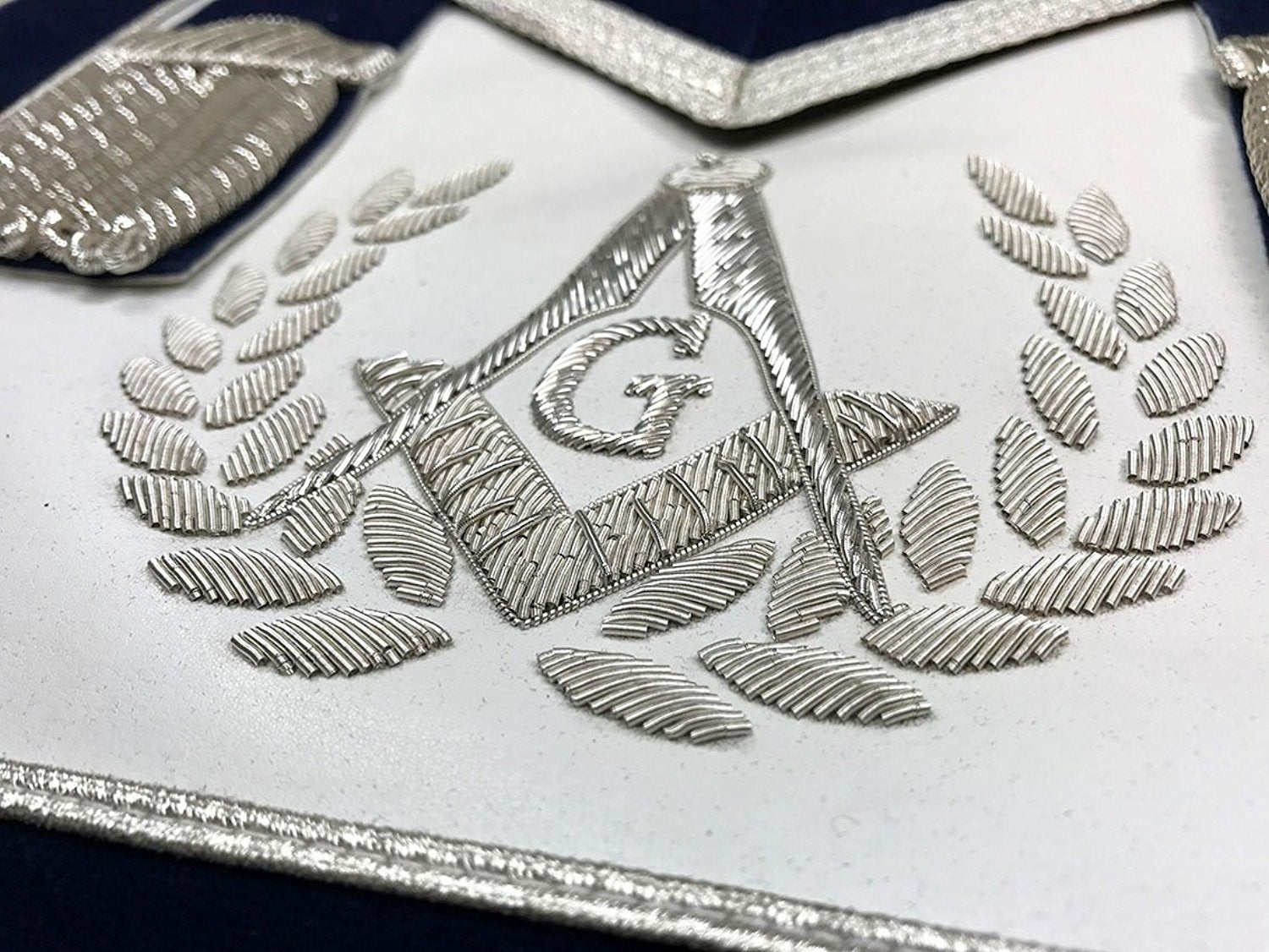Master Mason Apron Hand Embroidery Apron Gauntlet and Collar Set Navy