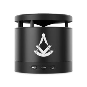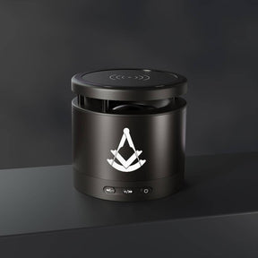 Equipped with Bluetooth version 4.2, a 33ft connection range, and a 3W output, this Aluminum-bodied, Masonic Bluetooth speaker delivers crystal clear sound anywhere you go. Connect any Android/ iOS phone (including iPhone X) and listen at max volumes for over 2 hours. The top part of the speaker is a smart wireless charging pad. Package includes: 2 in 1 USB charging cable & 3.5mm Aux cable.